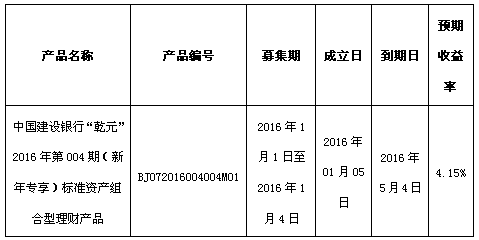 根据与投资者的约定,现将中国建设银行北京市分行理财产品成立情况信息进行披露: