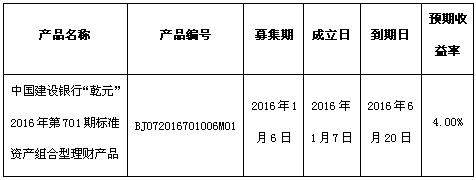 根据与投资者的约定,现将中国建设银行北京市分行理财产品成立情况信息进行披露: