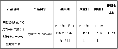 根据与投资者的约定,现将中国建设银行北京市分行理财产品成立情况信息进行披露: