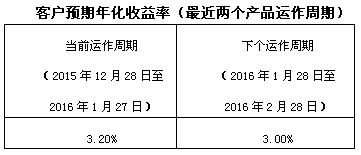 下个运作周期客户预期年化收益率于2016年1月28日(含)开始执行。