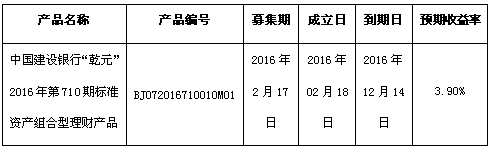 根据与投资者的约定,现将中国建设银行北京市分行理财产品成立情况信息进行披露: