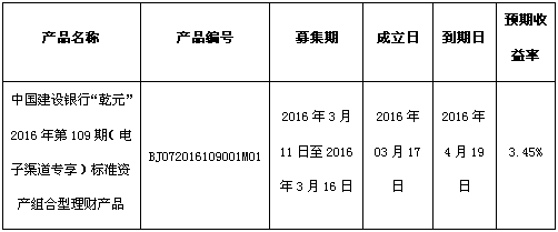 根据与投资者的约定,现将中国建设银行北京市分行理财产品成立情况信息进行披露: