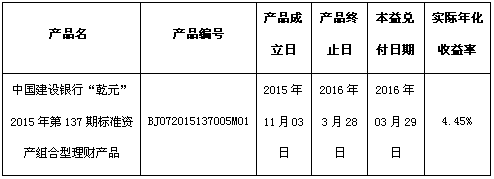 根据与投资者的约定,中国建设银行北京市分行发行的下列理财产品已经到期,现将理财产品兑付及清算情况进行信息披露: