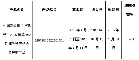 根据与投资者的约定,现将中国建设银行北京市分行理财产品成立情况信息进行披露: