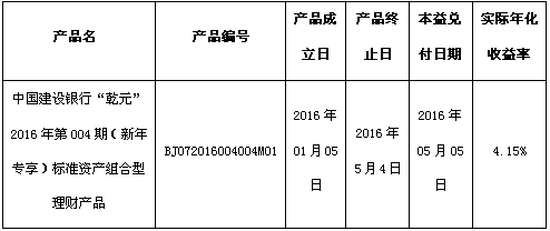 根据与投资者的约定,中国建设银行北京市分行发行的下列理财产品已经到期,现将理财产品兑付及清算情况进行信息披露: