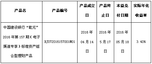 根据与投资者的约定,中国建设银行北京市分行发行的下列理财产品已经到期,现将理财产品兑付及清算情况进行信息披露: