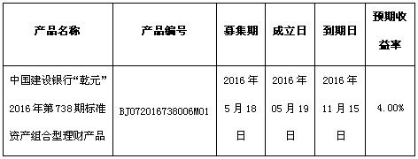 根据与投资者的约定,现将中国建设银行北京市分行理财产品成立情况信息进行披露:
