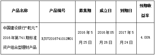 根据与投资者的约定,现将中国建设银行北京市分行理财产品成立情况信息进行披露: