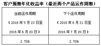 中国建设银行对本产品下个运作周期的客户预期年化收益率不作调整,详见下表: