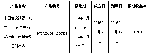 根据与投资者的约定,现将中国建设银行北京市分行理财产品成立情况信息进行披露: