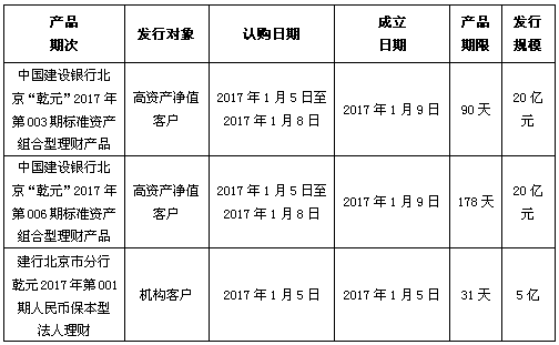 中国建设银行北京市分行定于2017年1月5日发行理财产品,现将相关发行情况公告如下:
