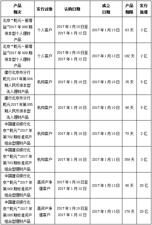中国建设银行北京市分行定于2017年1月10日发行理财产品,现将相关发行情况公告如下: