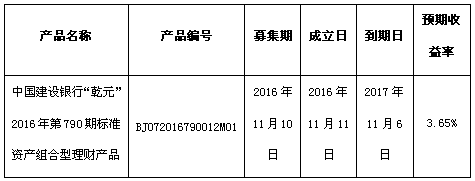 中国建设银行“乾元”2016年第790期标准资产组合型理财产品成立公告