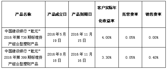 中国建设银行理财产品终止及清算公告2016年11月18日