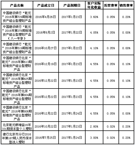 根据与投资者的约定,中国建设银行发行的下列理财产品已经到期并完成资金兑付,现将有关情况公告如下: