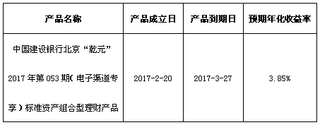 关于中国建设银行北京“乾元”2017年第053期(电子渠道专享)标准资产组合型理财产品成立的公告