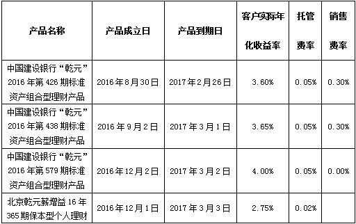 中国建设银行个人类理财产品终止及清算公告2017-3-3