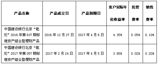 中国建设银行个人类理财产品终止及清算公告2017年4月7日