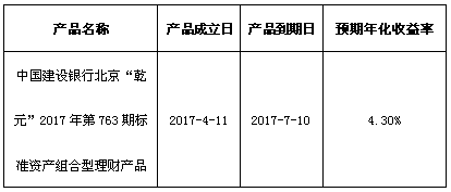 关于中国建设银行北京“乾元”2017年第763期标准资产组合型理财产品成立的公告