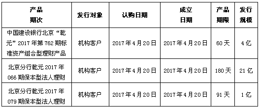 中国建设银行北京市分行定于2017年4月20日发行理财产品,现将相关发行情况公告如下: