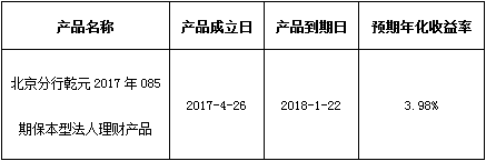 根据与投资者的约定,现将理财产品成立情况信息进行披露: