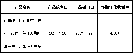 根据与投资者的约定,现将理财产品成立情况信息进行披露: