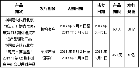 中国建设银行北京市分行定于2017年5月2日发行理财产品,现将相关发行情况公告如下:
