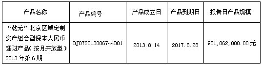 “乾元”北京区域定制资产组合型保本人民币理财产品(按月开放型)2013年第6期