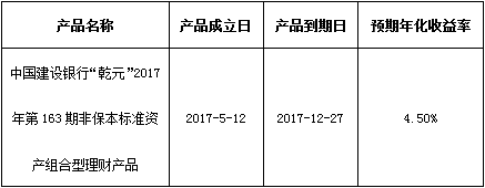 关于中国建设银行“乾元”2017年第163期非保本标准资产组合型理财产品成立的公告