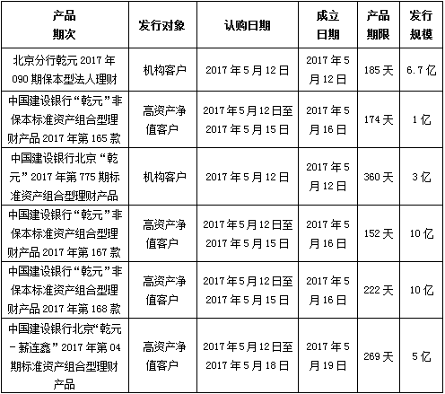 中国建设银行北京市分行定于2017年5月12日发行理财产品,现将相关发行情况公告如下: