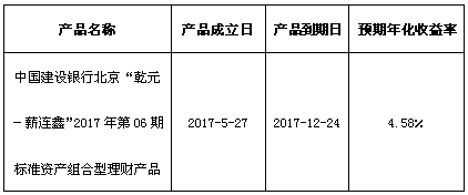 关于中国建设银行北京“乾元-薪连鑫”2017年第06期标准资产组合型理财产品成立的公告