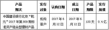 中国建设银行北京市分行定于2017年6月12日发行理财产品,现将相关发行情况公告如下:
