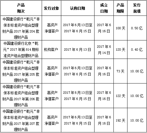 中国建设银行北京市分行定于2017年6月13日发行理财产品,现将相关发行情况公告如下: