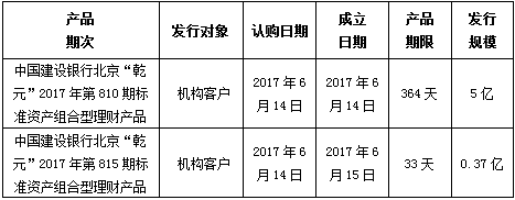 建行北京市分行理财产品发行公告2017年6月14日