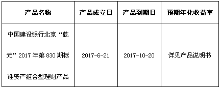 根据与投资者的约定,现将理财产品成立情况信息进行披露: