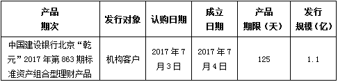 中国建设银行北京市分行定于2017年7月3日发行理财产品,现将相关发行情况公告如下: