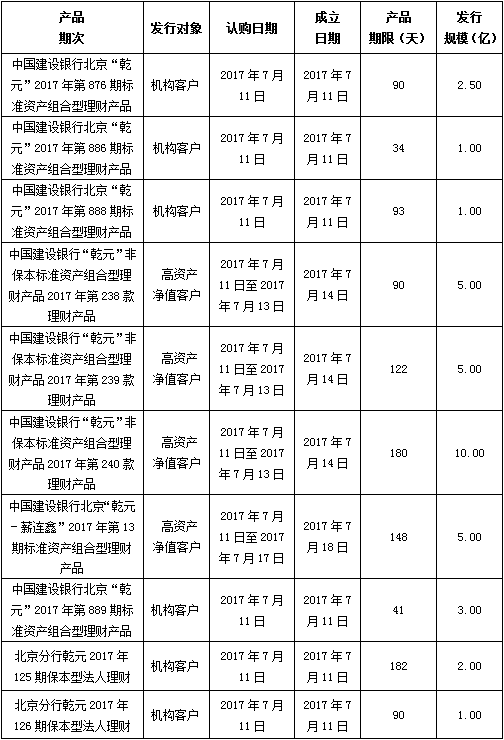 中国建设银行北京市分行定于2017年7月11日发行理财产品,现将相关发行情况公告如下:
