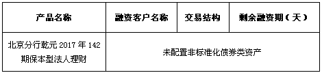 依照《中国银监会关于规范商业银行理财业务投资运作有关问题的通知》(银监发〔2013〕8号)要求,现对本期产品投资非标准化债权资产清单披露如下: