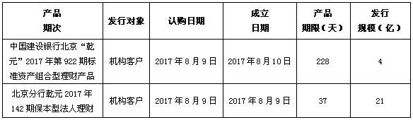 中国建设银行北京市分行定于2017年8月9日发行理财产品,现将相关发行情况公告如下: