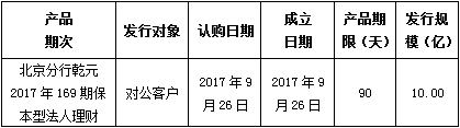 中国建设银行北京市分行定于2017年9月26日发行理财产品,现将相关发行情况公告如下: