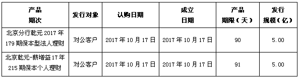 中国建设银行北京市分行定于2017年10月17日发行理财产品,现将相关发行情况公告如下: