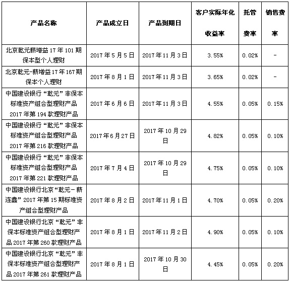 注:上述产品按照说明书中关于资产的投资类型和比例的约定进行投资,所投资非标准化债权资产已进行披露,产品运作收益超出客户实际年化收益率、托管费率及销售费率的部分将作为产品的浮动管理费用。特此公告。