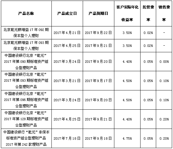 根据与投资者的约定,中国建设银行发行的下列理财产品已经到期并完成资金兑付,现将有关情况公告如下: