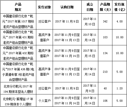 中国建设银行北京市分行定于2017年11月9日发行理财产品,现将相关发行情况公告如下: