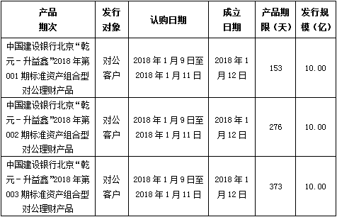 建行北京市分行理财产品发行公告2018年1月9日