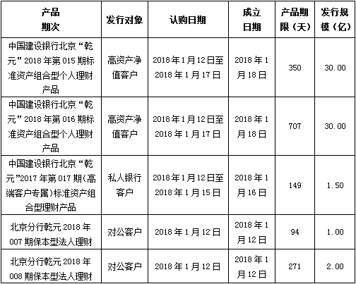 中国建设银行北京市分行定于2018年1月12日发行理财产品,现将相关发行情况公告如下: