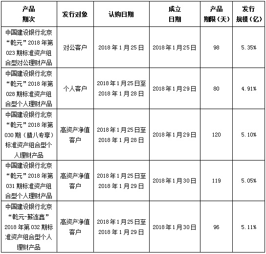 中国建设银行北京市分行定于2018年1月25日发行理财产品,现将相关发行情况公告如下: