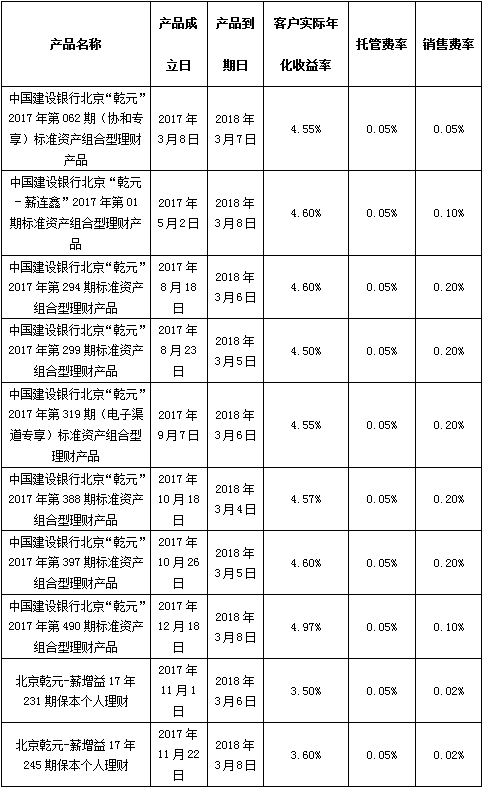 根据与投资者的约定,中国建设银行发行的下列理财产品已经到期并完成资金兑付,现将有关情况公告如下: