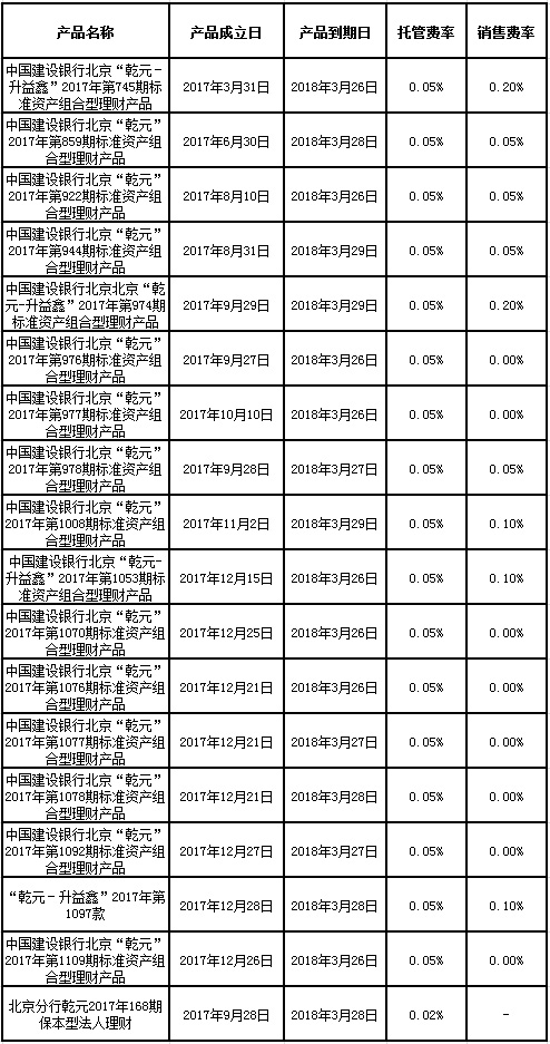 中国建设银行对公类理财产品终止及清算公告2018年3月30日