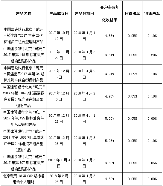 中国建设银行个人类理财产品终止及清算公告2018年4月4日